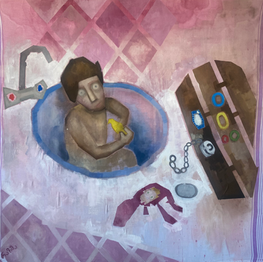 The struggle to remember those formative years has become a central theme in my creative journey. This longing to re-connect with my past drives me to capture fleeting moments fragments of memory that resurface like whispers from the edges of my mind. I paint what I can remember: a passing image, a forgotten feeling, or even the stories my relatives shared about those early days. Each piece is an exploration of memory fragile and fragmented nature, an attempt to bridge the gap between what was, what is remembered, and what might have been. Through my work, I aim to preserve the intangible and give form to what fades. One particular painting, for example, was born from a hazy memory of a moment when I poured soup on my own head. I was a child, sitting on the balcony of my childhood home. My mother had told me that if I didn’t finish my food, she would pour it on me so I took the bowl and did it myself. Itís a moment that feels both absurd and emotionally charged, unclear yet strangely vivid. These are the kinds of fragmented stories that inform my process: real or imagined, they hold emotional truth. Each piece is an attempt to reconstruct the narrative of my childhood by blending what is remembered, what is imagined, and what is retold. My process is one of preservation: capturing the intangible, stitching together fragments, and confronting the spaces where memory falters. Ultimately, my work is not just about remembering it’s about embracing the beauty of the incomplete. It’s a journey to find meaning in the gaps and to celebrate the imperfect ways we hold on to the past.